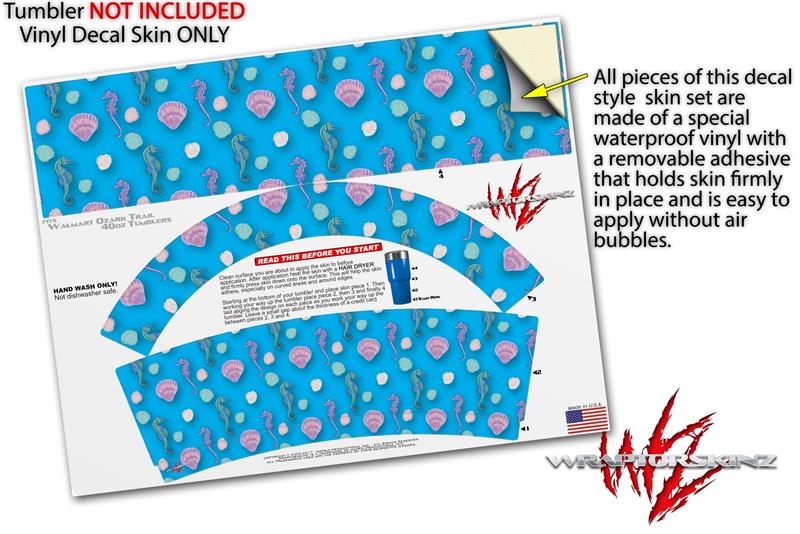 Skin Decal Wrap for Walmart Ozark Trail Tumblers 40oz Seahorses and Shells Blue Medium (TUMBLER NOT INCLUDED) by WraptorSkinz
