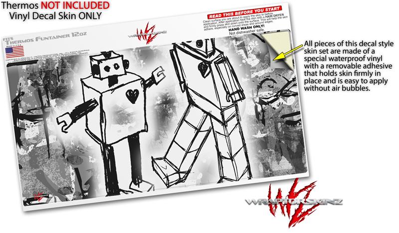 Skin Decal Wrap for Thermos Funtainer 12oz Bottle Robot Love (BOTTLE NOT INCLUDED) by WraptorSkinz