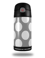 Skin Decal Wrap for Thermos Funtainer 12oz Bottle Kearas Polka Dots Whtie On Gray (BOTTLE NOT INCLUDED) by WraptorSkinz