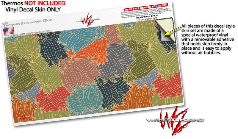 Skin Decal Wrap for Thermos Funtainer 12oz Bottle Flowers Pattern 03 (BOTTLE NOT INCLUDED) by WraptorSkinz
