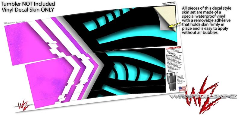 WraptorSkinz Skin Wrap compatible with RTIC 30oz ORIGINAL 2017 AND OLDER Tumblers Black Waves Neon Teal Hot Pink (TUMBLER NOT INCLUDED)