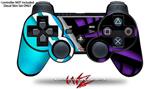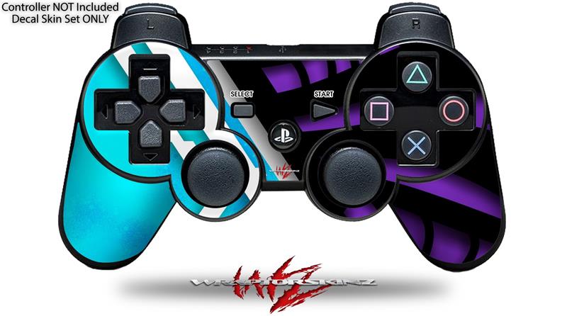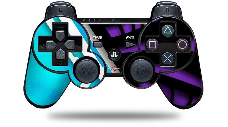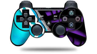 Sony PS3 Controller Decal Style Skin - Black Waves Neon Teal Purple (CONTROLLER NOT INCLUDED)