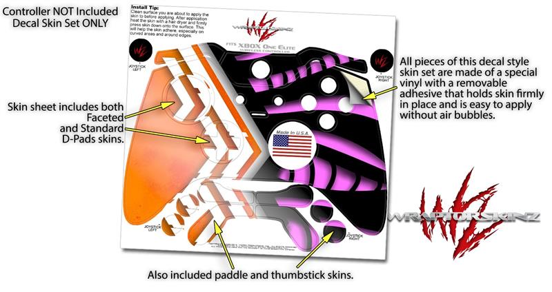 Black Waves Orange Hot Pink - Decal Style Skin fits Microsoft XBOX One ELITE Wireless Controller