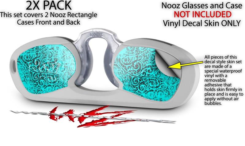 Decal Style Vinyl Skin Wrap 2 Pack for Nooz Glasses Rectangle Case Folder Doodles Neon Teal (NOOZ NOT INCLUDED) by WraptorSkinz