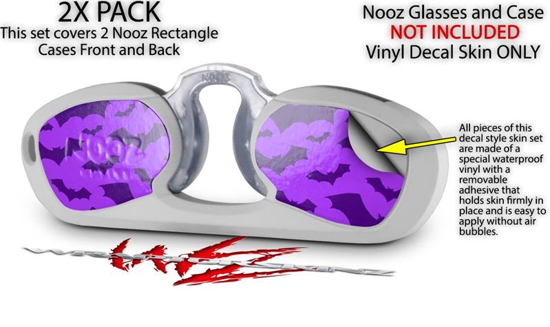 Decal Style Vinyl Skin Wrap 2 Pack for Nooz Glasses Rectangle Case Deathrock Bats Purple (NOOZ NOT INCLUDED) by WraptorSkinz