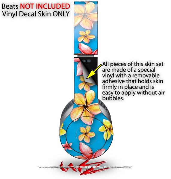 WraptorSkinz Skin Decal Wrap compatible with Beats Solo HD (Original) Beach Flowers Blue Medium (HEADPHONES NOT INCLUDED)