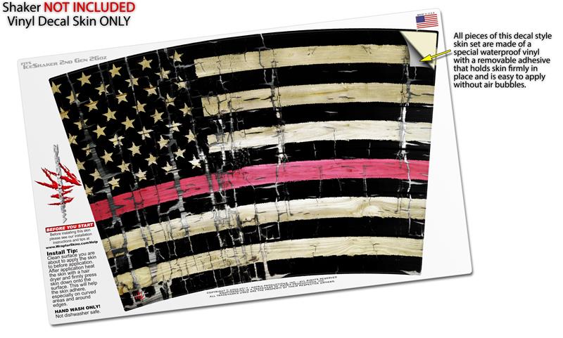 Skin Wrap Decal for IceShaker 2nd Gen 26oz Painted Faded and Cracked Pink Line USA American Flag (SHAKER NOT INCLUDED)