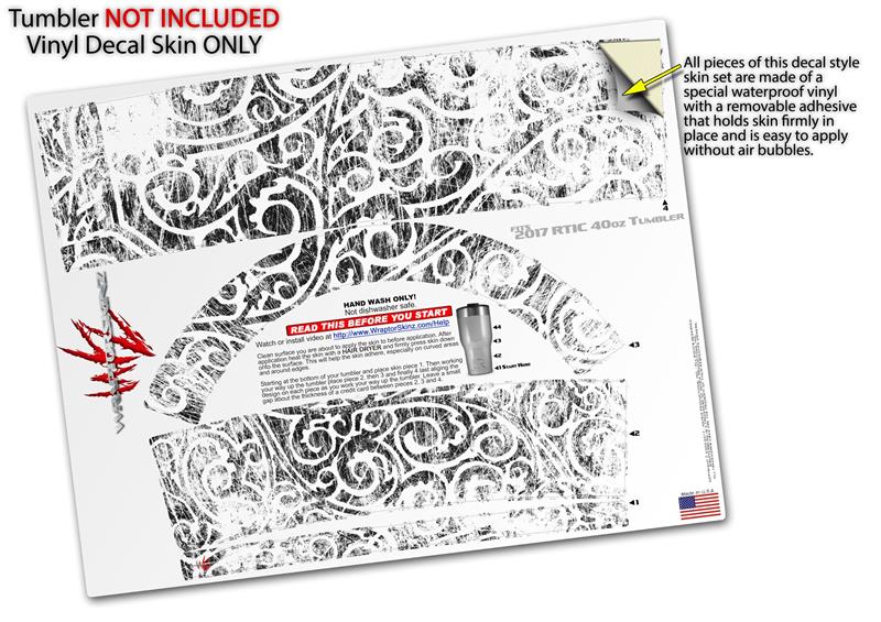 Skin Wrap Decal for 2017 RTIC Tumblers 40oz Folder Doodles White (TUMBLER NOT INCLUDED)