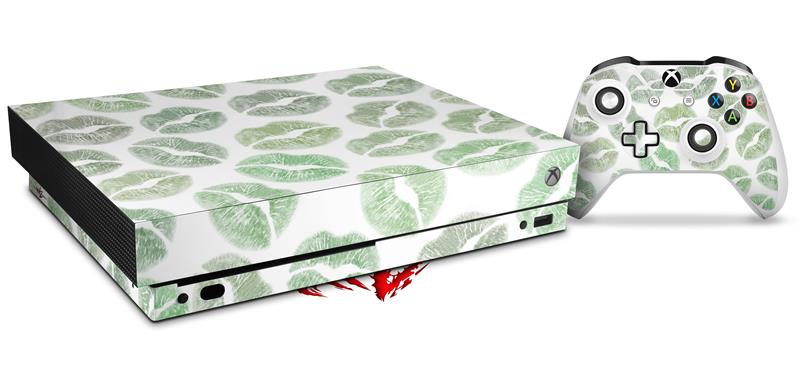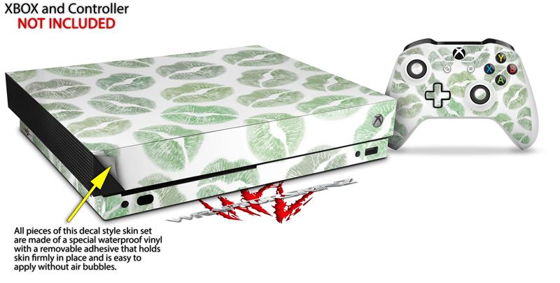 Skin Wrap for XBOX One X Console and Controller Green Lips