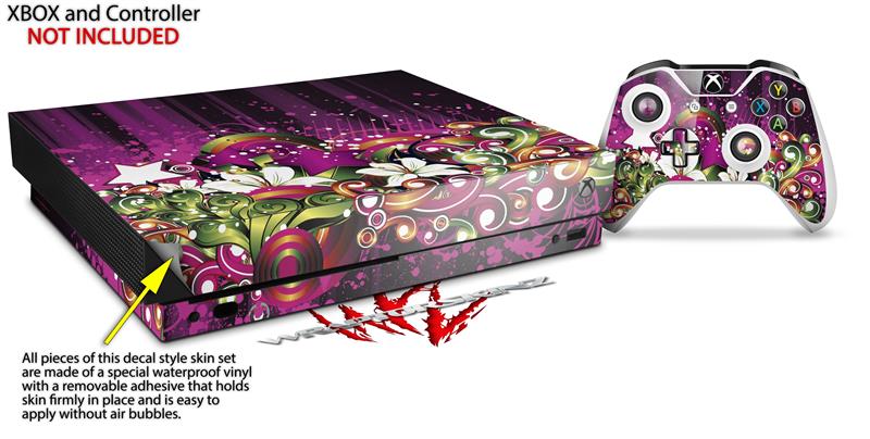Skin Wrap for XBOX One X Console and Controller Grungy Flower Bouquet