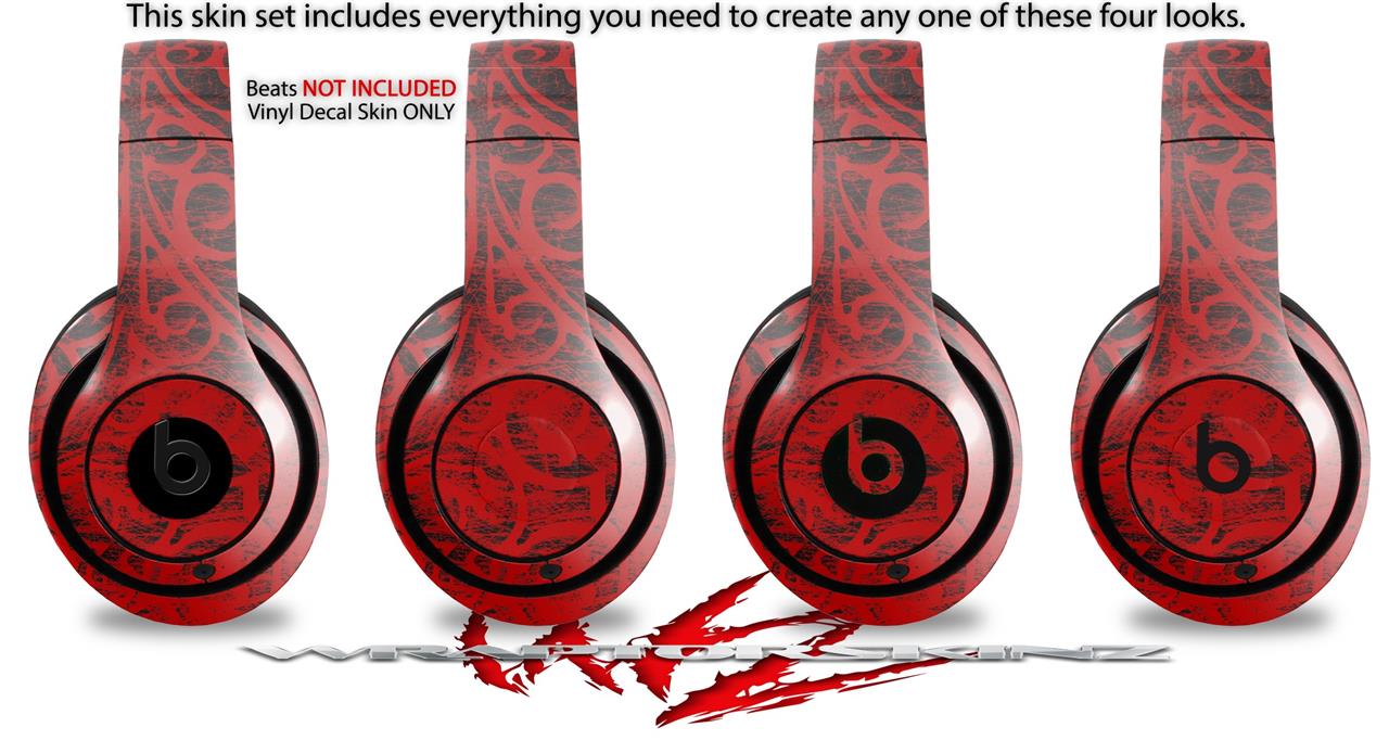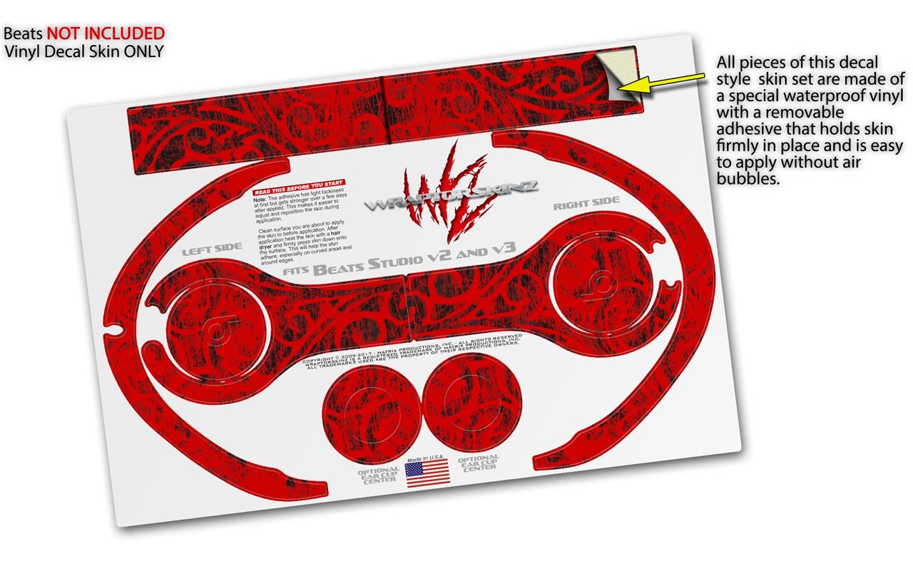 WraptorSkinz Skin Decal Wrap compatible with Beats Studio 2 and 3 Wired and Wireless Headphones Folder Doodles Red Skin Only (HEADPHONES NOT INCLUDED)