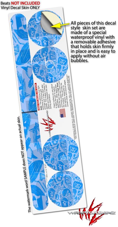 WraptorSkinz Skin Decal Wrap compatible with Beats EP Headphones Skull Sketches Blue Skin Only HEADPHONES NOT INCLUDED