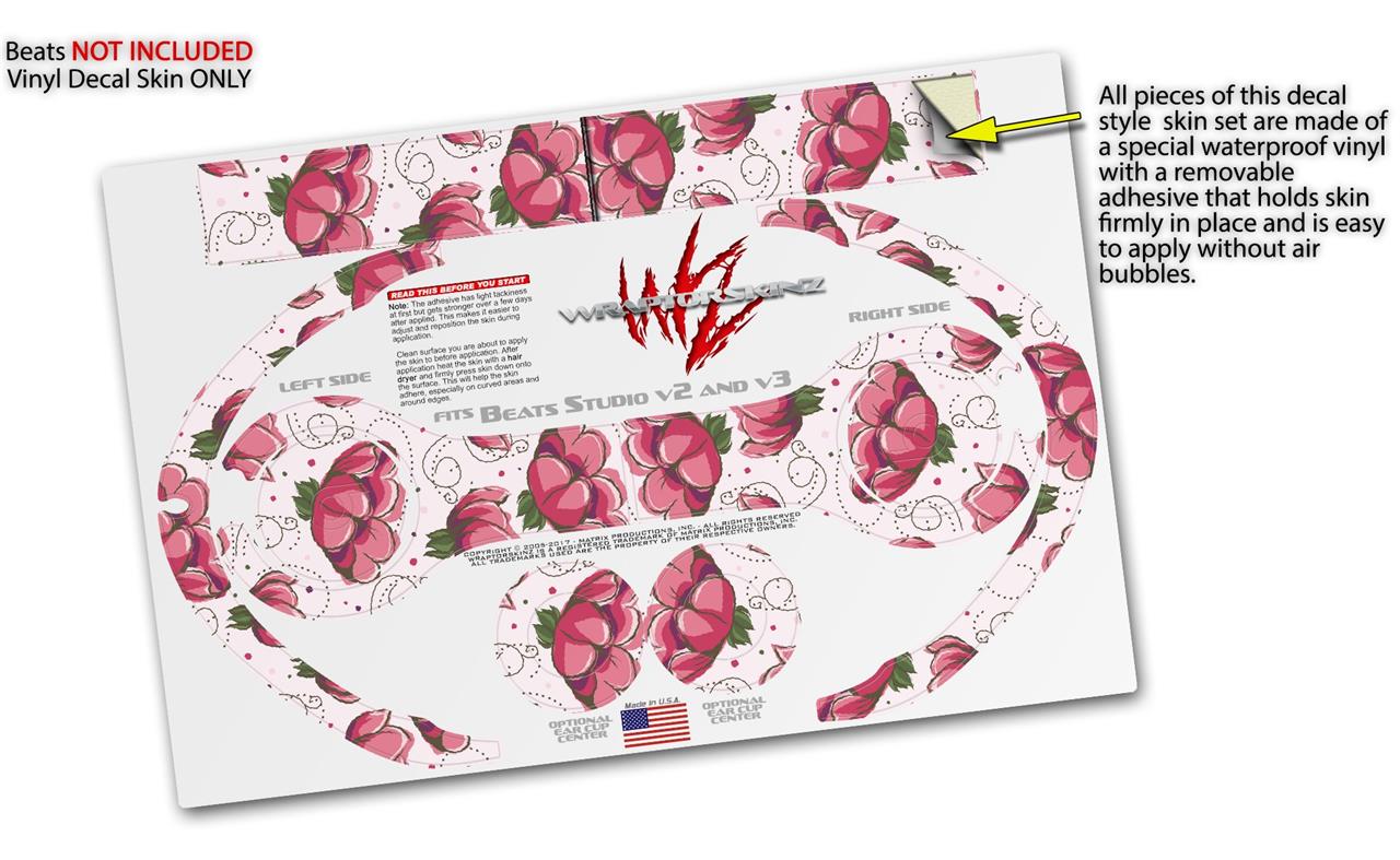 WraptorSkinz Skin Decal Wrap compatible with Beats Studio 2 and 3 Wired and Wireless Headphones Flowers Pattern 16 Skin Only (HEADPHONES NOT INCLUDED)