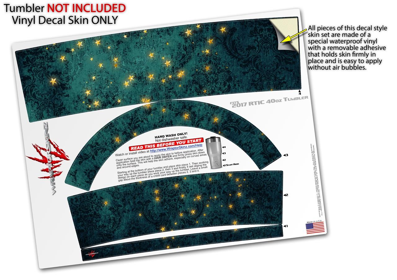Skin Wrap Decal for 2017 RTIC Tumblers 40oz Green Starry Night (TUMBLER NOT INCLUDED)