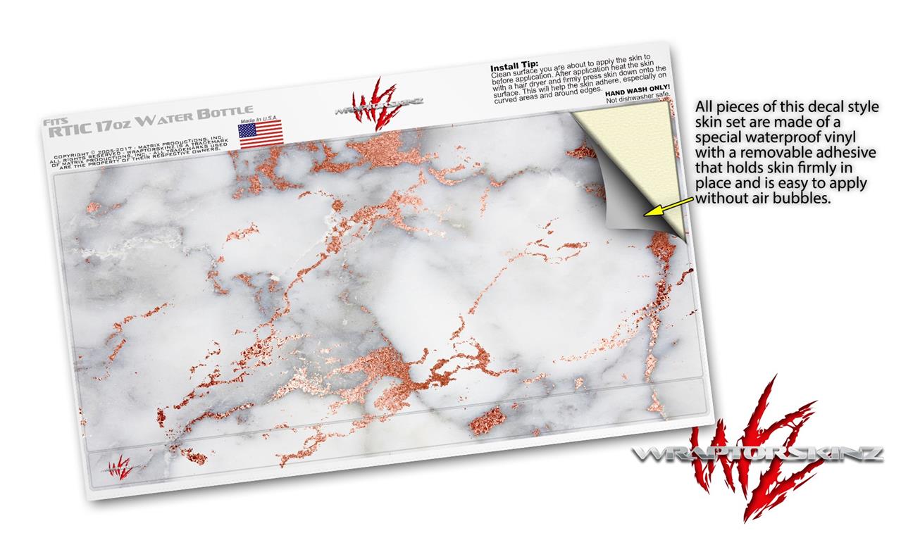 Skin Decal Wrap for RTIC Water Bottle 17oz Rose Gold Gilded Grey Marble (BOTTLE NOT INCLUDED)