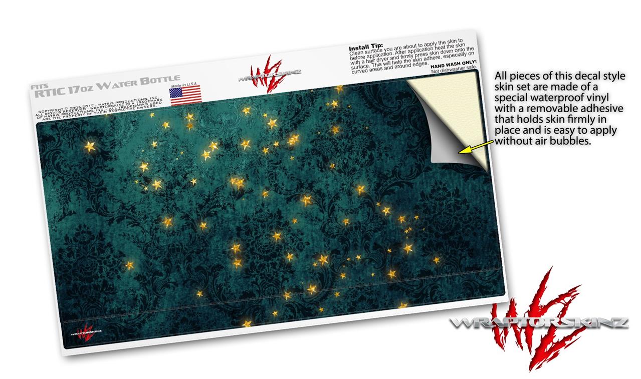 Skin Decal Wrap for RTIC Water Bottle 17oz Green Starry Night (BOTTLE NOT INCLUDED)