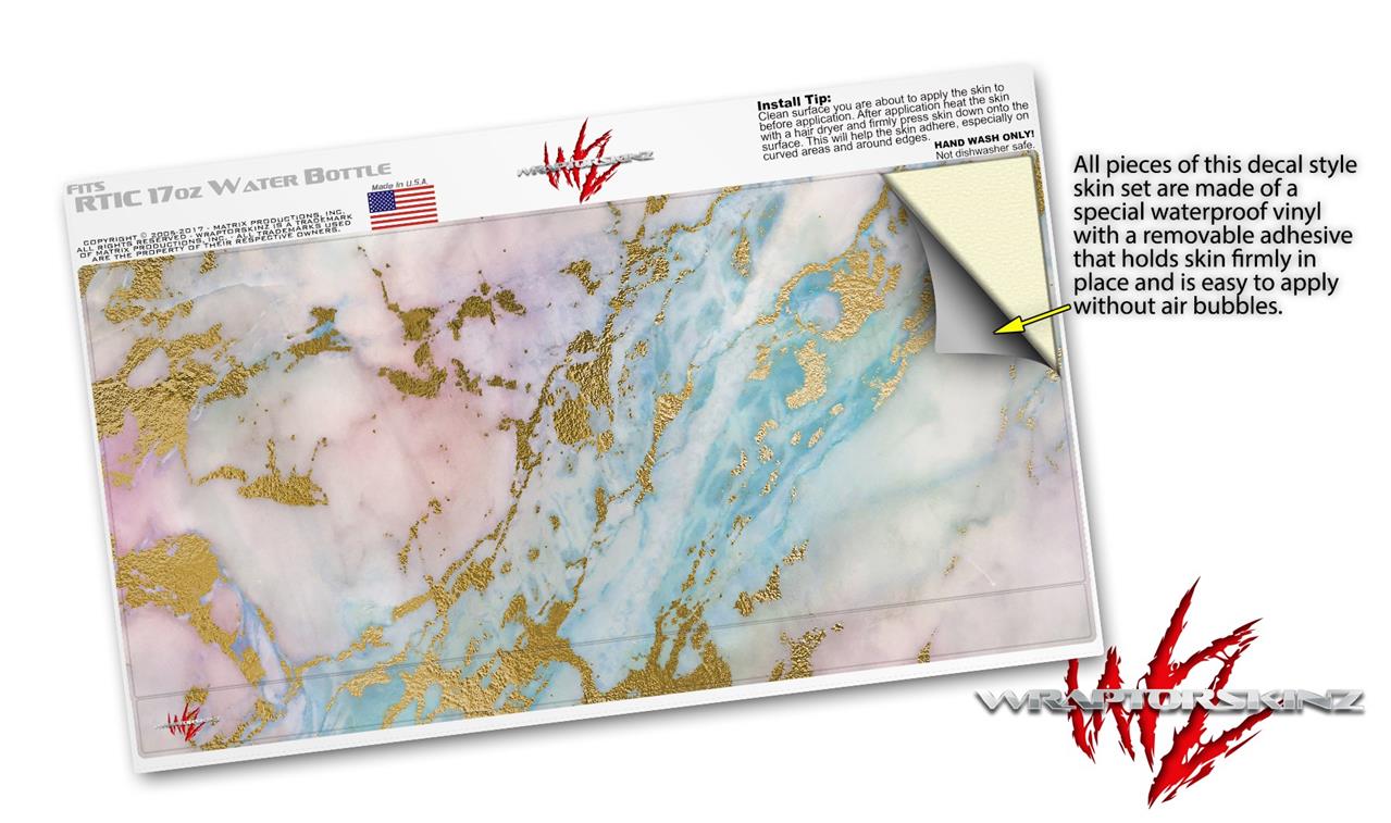 Skin Decal Wrap for RTIC Water Bottle 17oz Cotton Candy Gilded Marble (BOTTLE NOT INCLUDED)