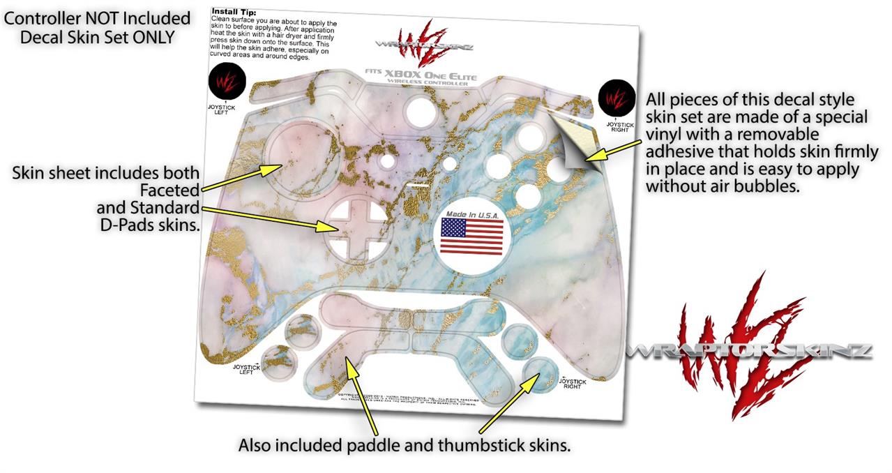 Cotton Candy Gilded Marble - Decal Style Skin fits Microsoft XBOX One ELITE Wireless Controller