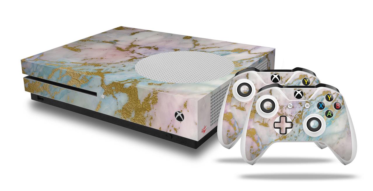WraptorSkinz Decal Skin Wrap Set works with 2016 and newer XBOX One S Console and 2 Controllers Cotton Candy Gilded Marble