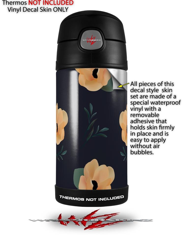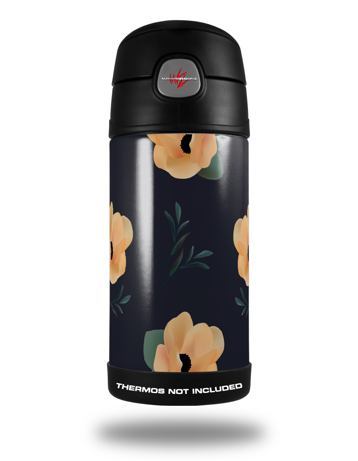 Skin Decal Wrap for Thermos Funtainer 12oz Bottle Poppy Orange Navy (BOTTLE NOT INCLUDED)
