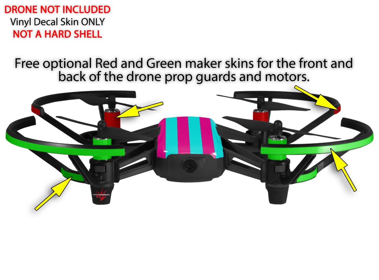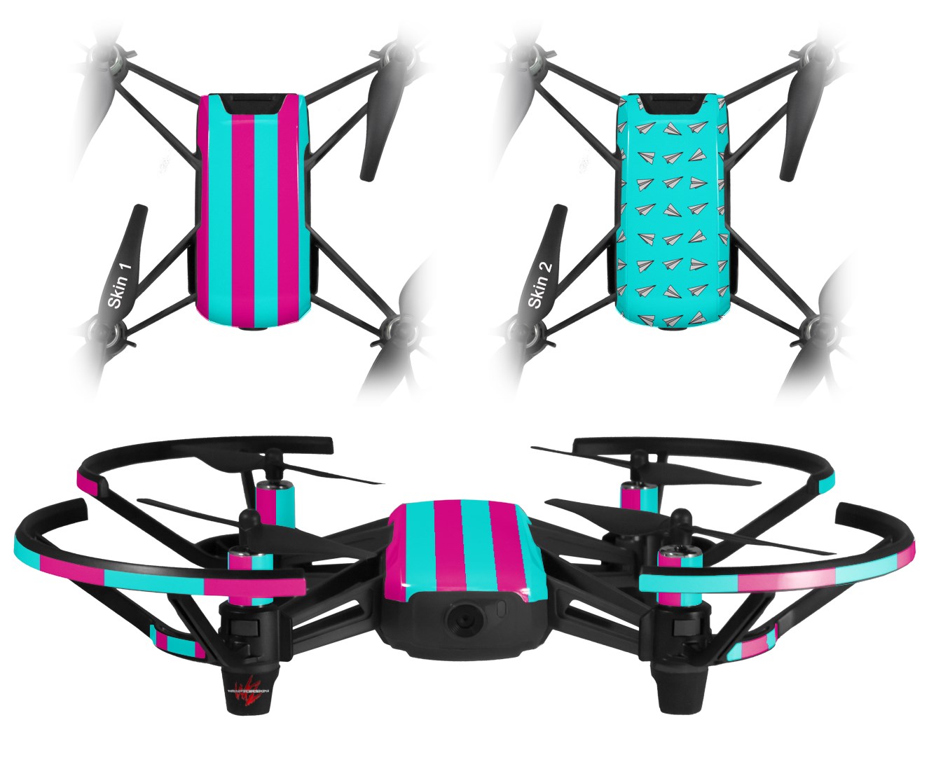 Skin Decal Wrap 2 Pack for DJI Ryze Tello Drone Psycho Stripes Neon Teal and Hot Pink DRONE NOT INCLUDED