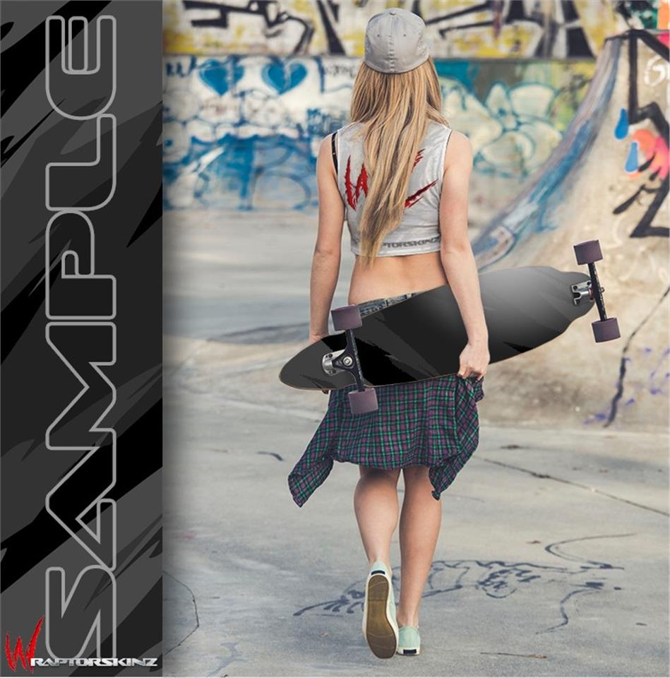 Our longboard skins are made so that one size fits boards up to 10” wide x 42” long. This means after applying the skin it you will trimming to fit you’re the shape of your board with a sharp utility knife.