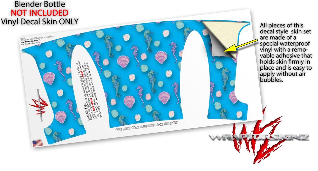 Decal Style Skin Wrap works with Blender Bottle 20oz Seahorses and Shells Blue Medium (BOTTLE NOT INCLUDED)