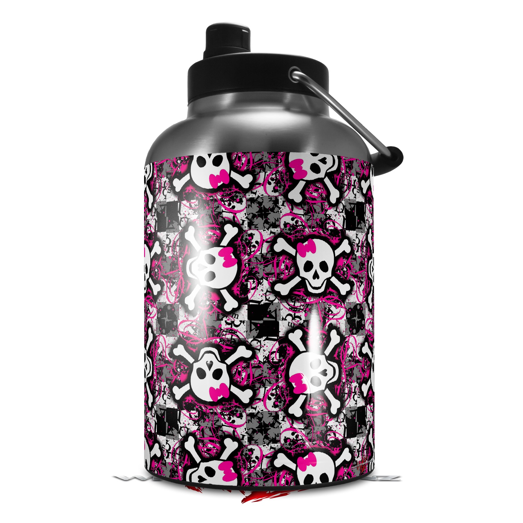 Skin Decal Wrap for 2017 RTIC One Gallon Jug Splatter Girly Skull Pink (Jug NOT INCLUDED) by WraptorSkinz
