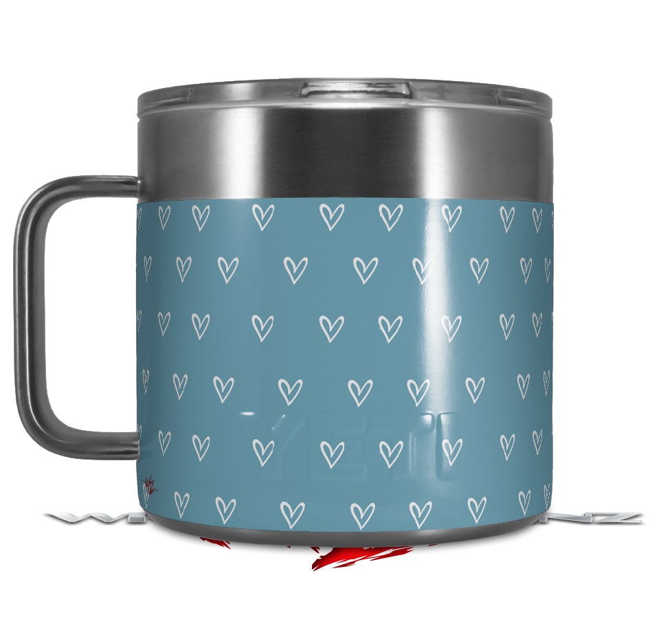 Skin Decal Wrap for Yeti Coffee Mug 14oz Hearts Blue On White - 14 oz CUP NOT INCLUDED by WraptorSkinz