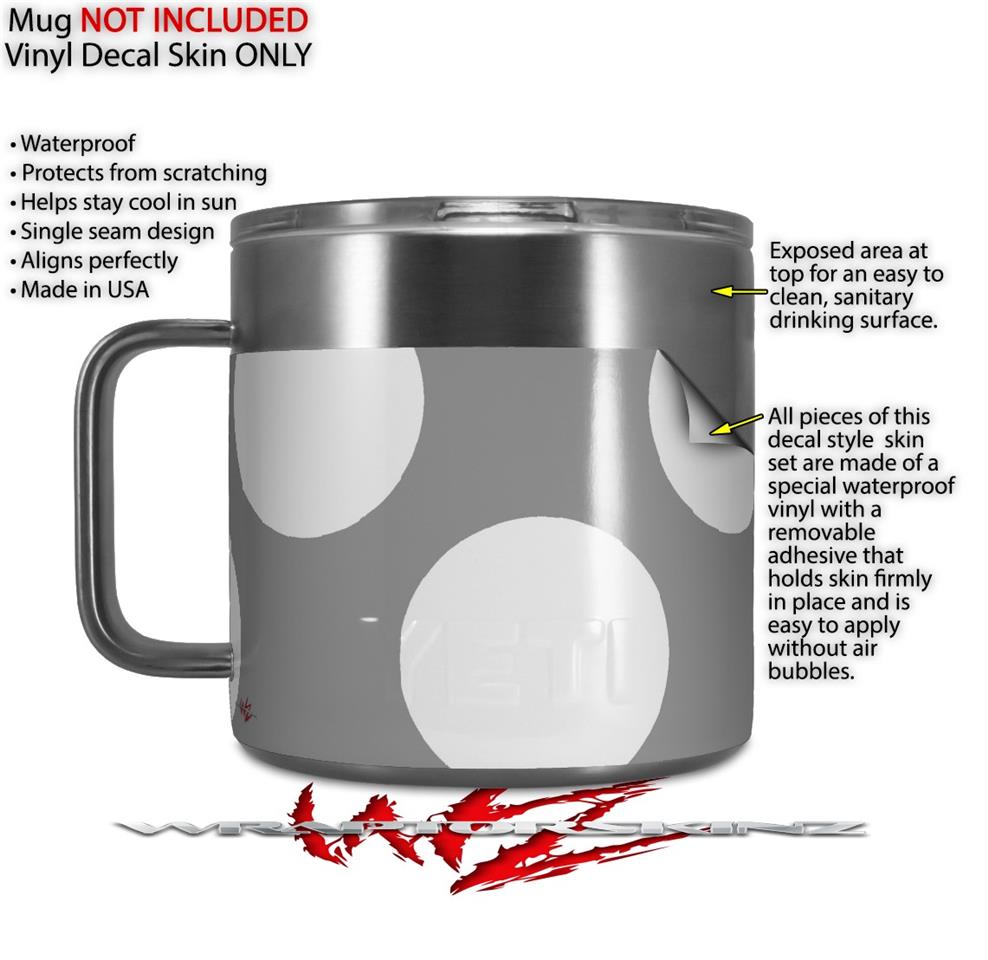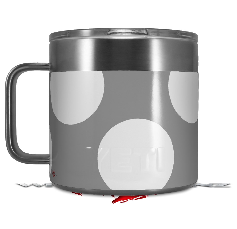Skin Decal Wrap for Yeti Coffee Mug 14oz Kearas Polka Dots Whtie On Gray - 14 oz CUP NOT INCLUDED by WraptorSkinz