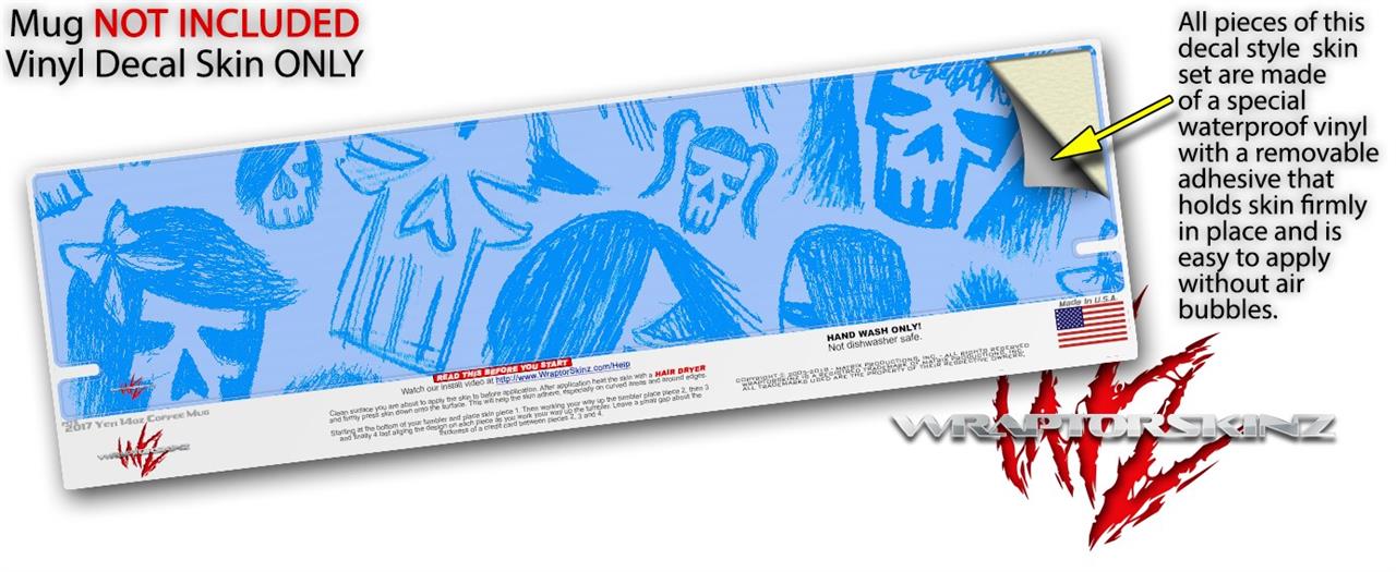 Skin Decal Wrap for Yeti Coffee Mug 14oz Skull Sketches Blue - 14 oz CUP NOT INCLUDED by WraptorSkinz