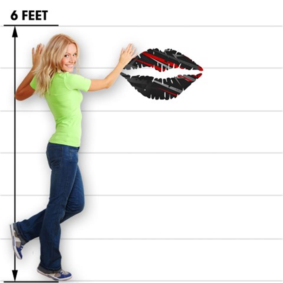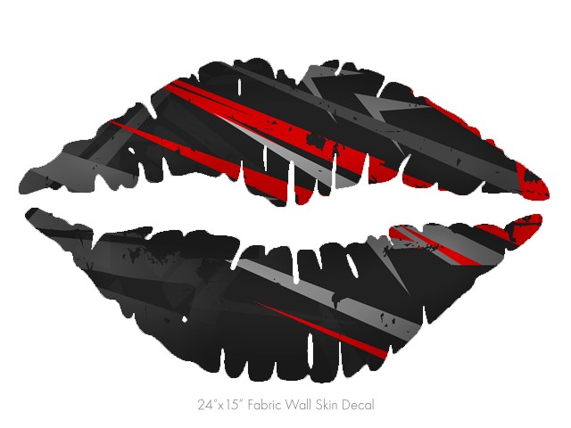 Baja 0014 Red - Kissing Lips Fabric Wall Skin Decal measures 24x15 inches