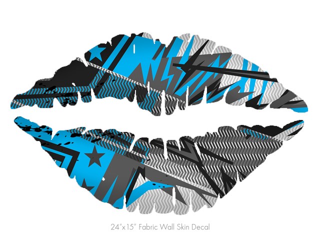 Baja 0032 Blue Medium - Kissing Lips Fabric Wall Skin Decal measures 24x15 inches