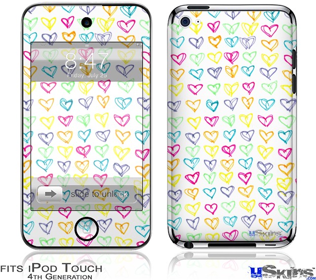 iPod Touch 4G Decal Style Vinyl Skin - Kearas Hearts White