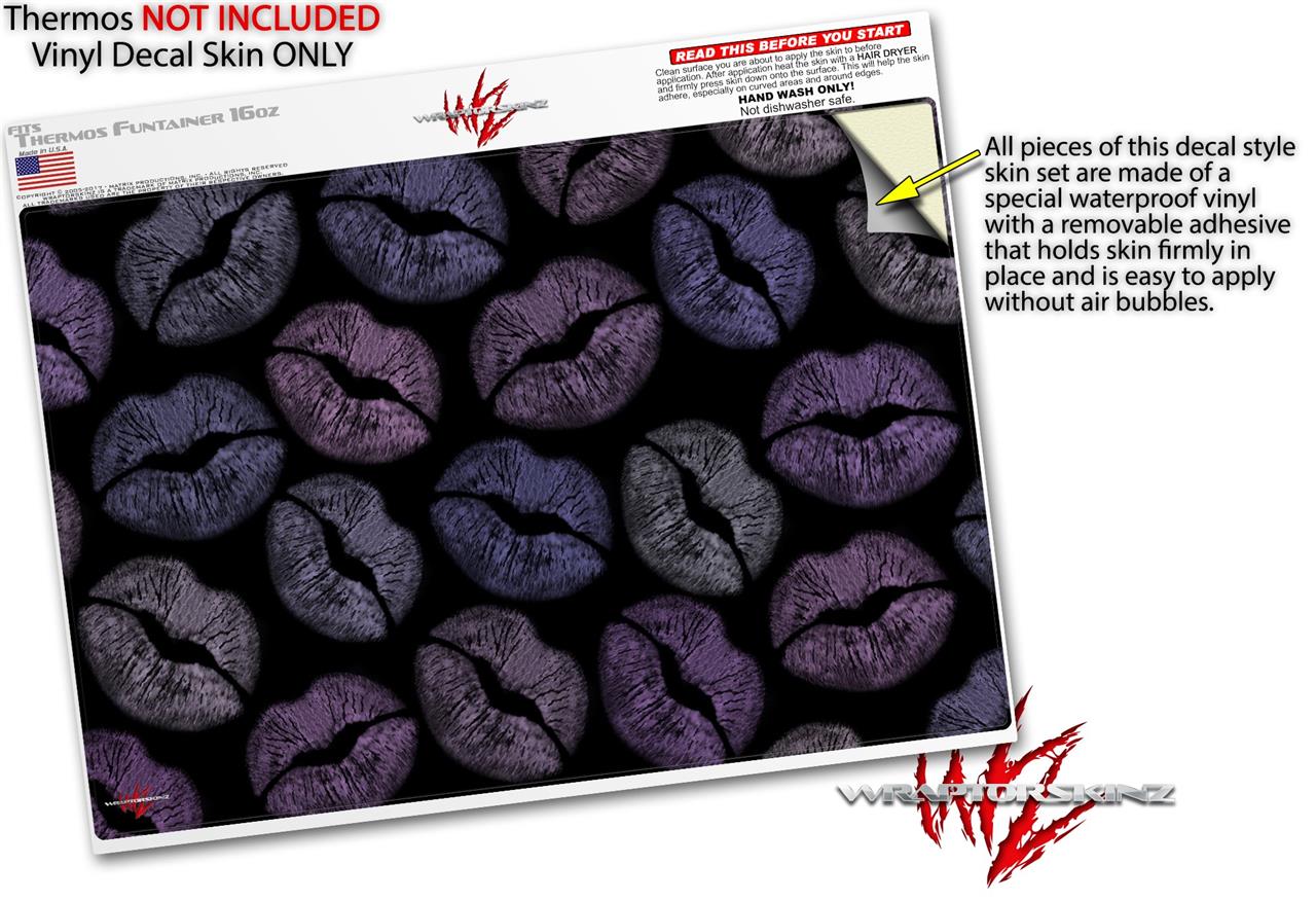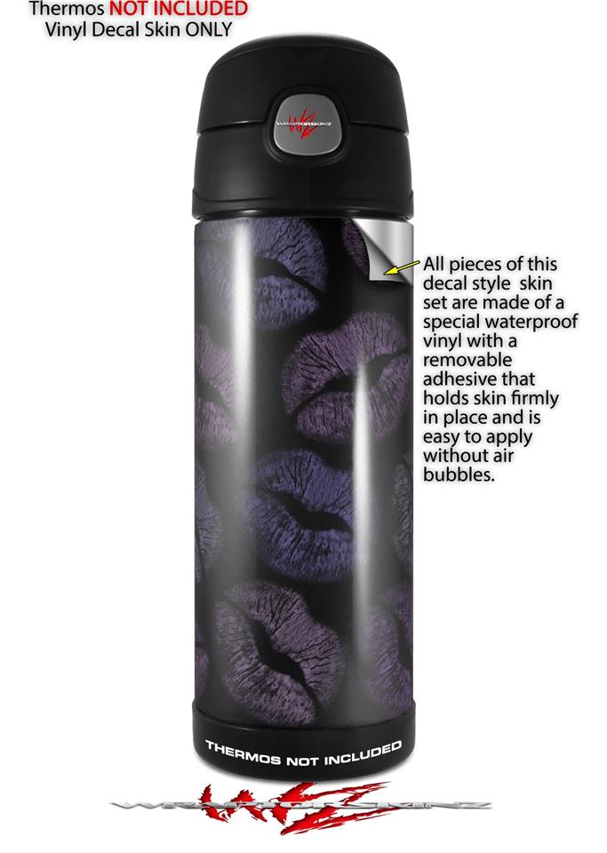 Skin Decal Wrap for Thermos Funtainer 16oz Bottle Purple And Black Lips (BOTTLE NOT INCLUDED) by WraptorSkinz