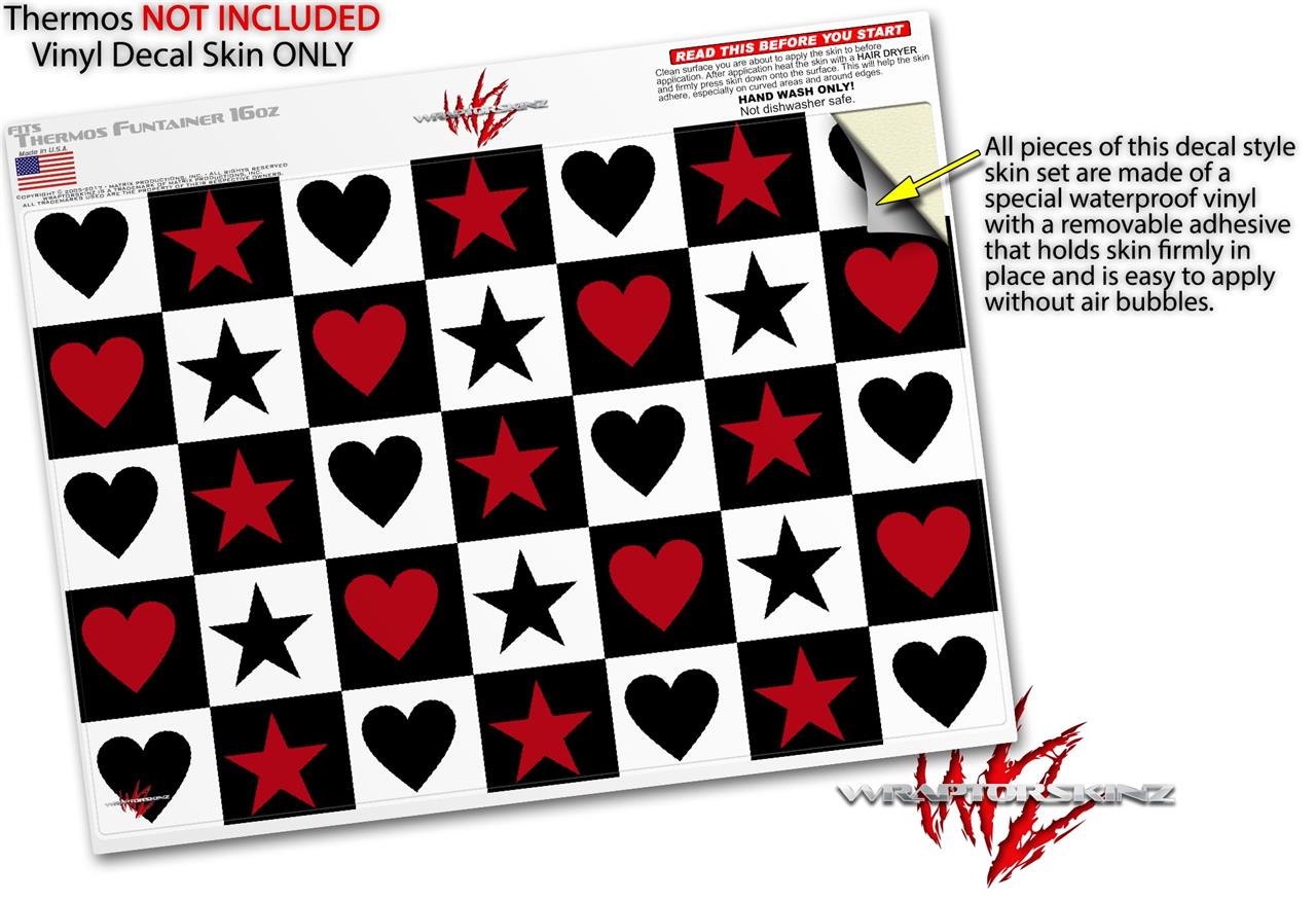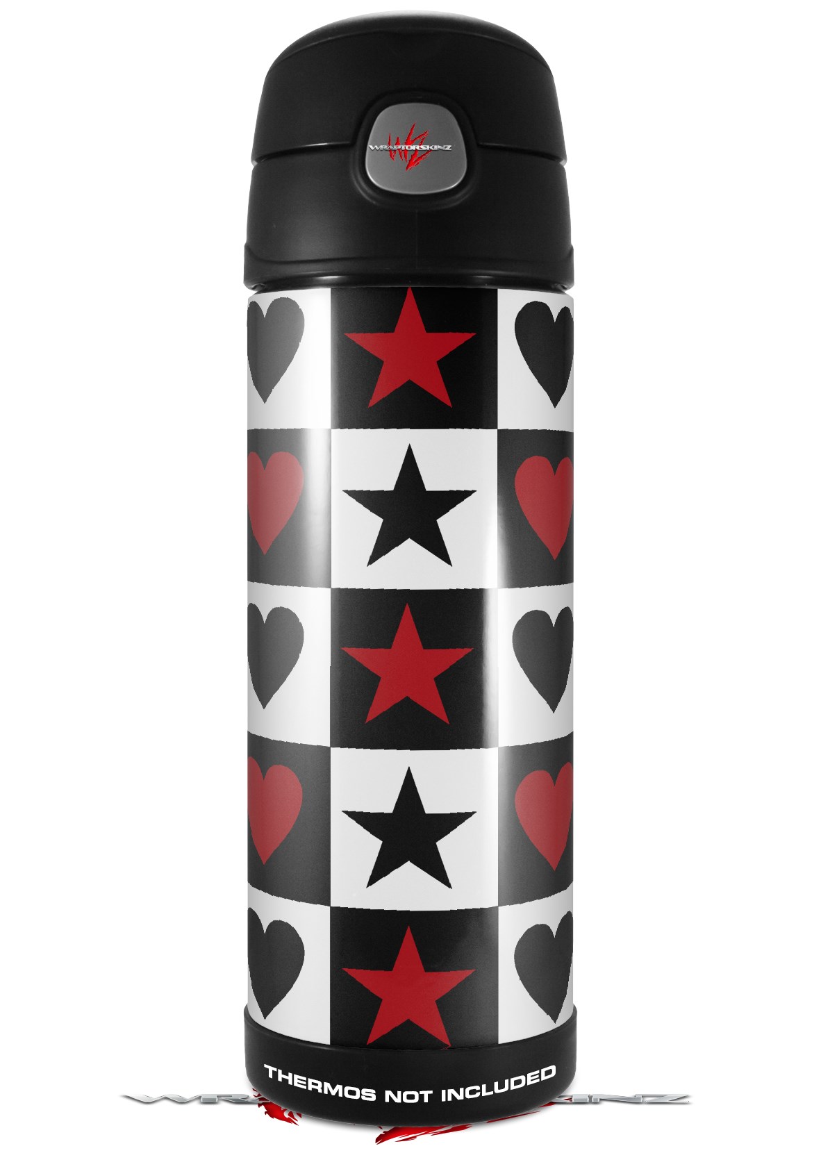 Skin Decal Wrap for Thermos Funtainer 16oz Bottle Hearts and Stars Red (BOTTLE NOT INCLUDED) by WraptorSkinz