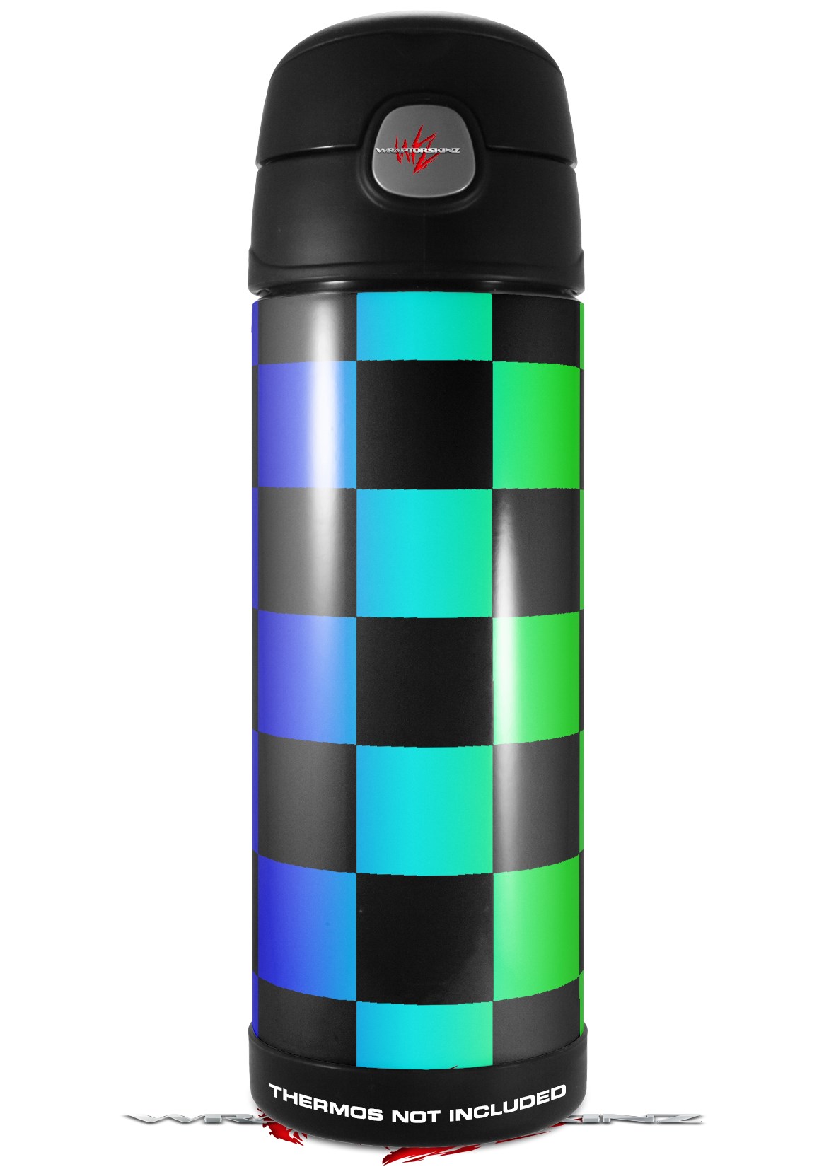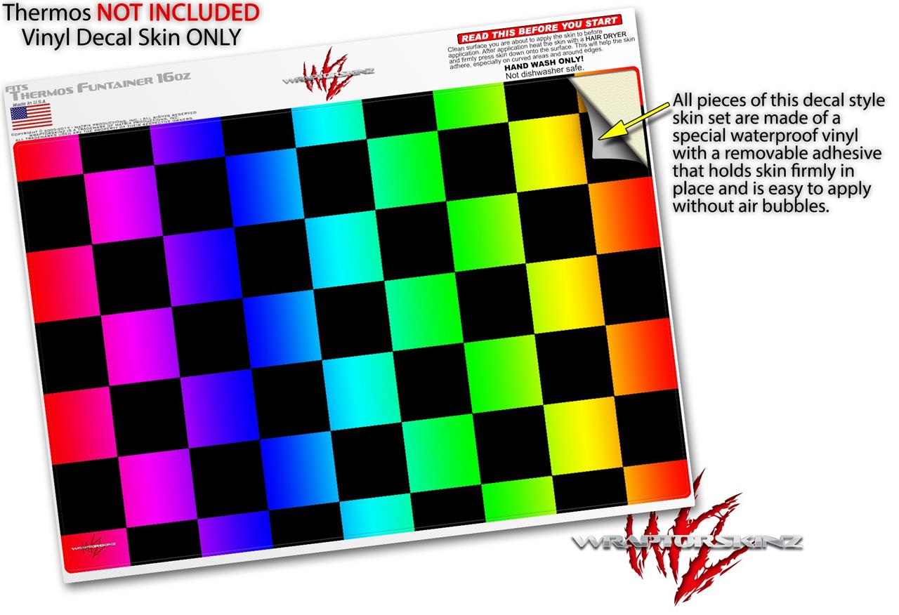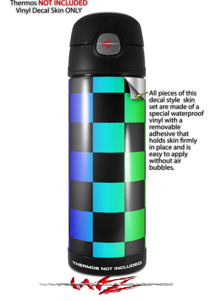 Skin Decal Wrap for Thermos Funtainer 16oz Bottle Rainbow Checkerboard (BOTTLE NOT INCLUDED) by WraptorSkinz