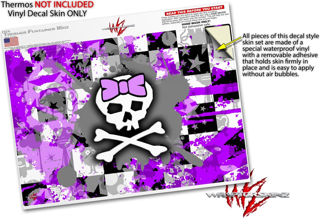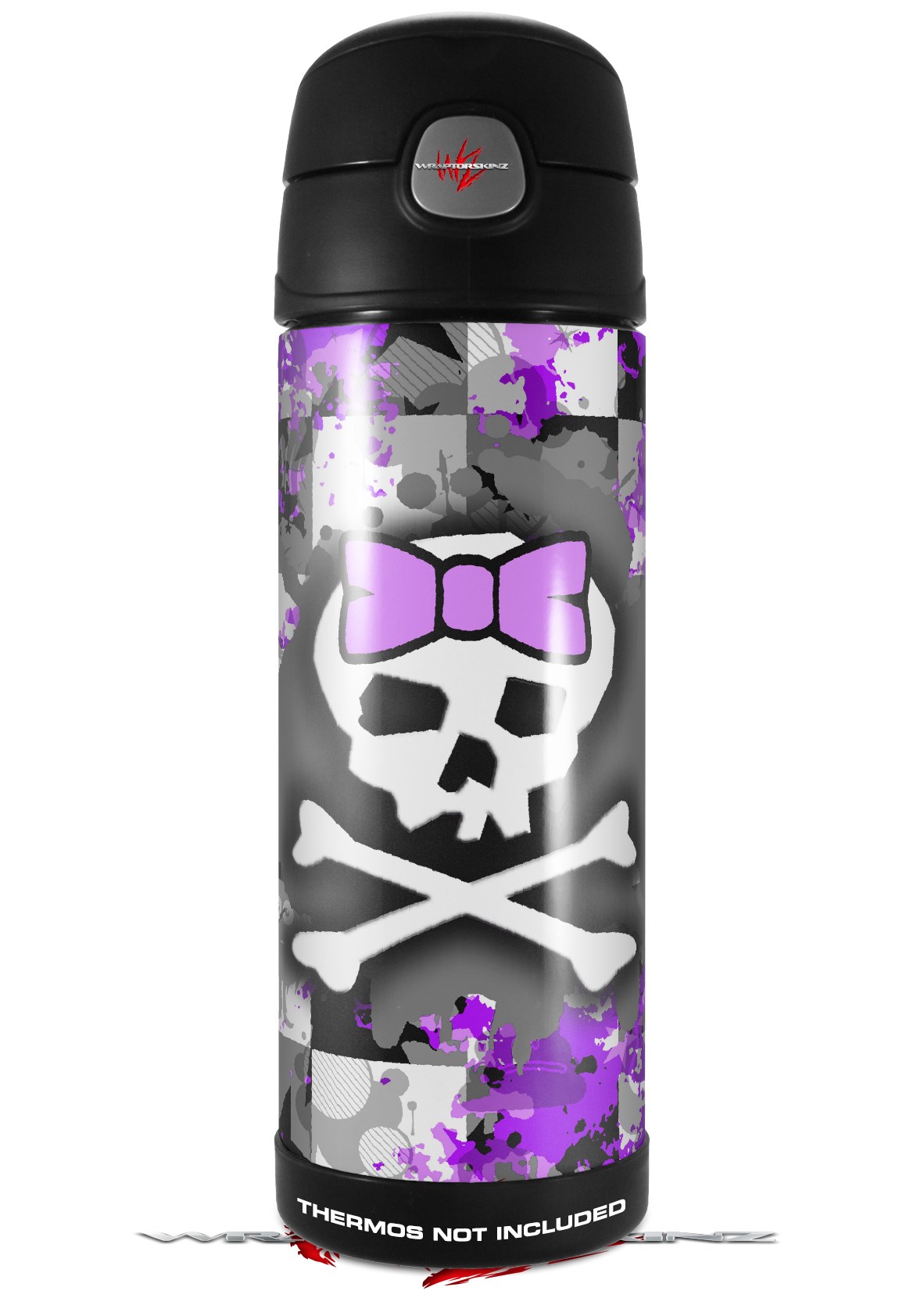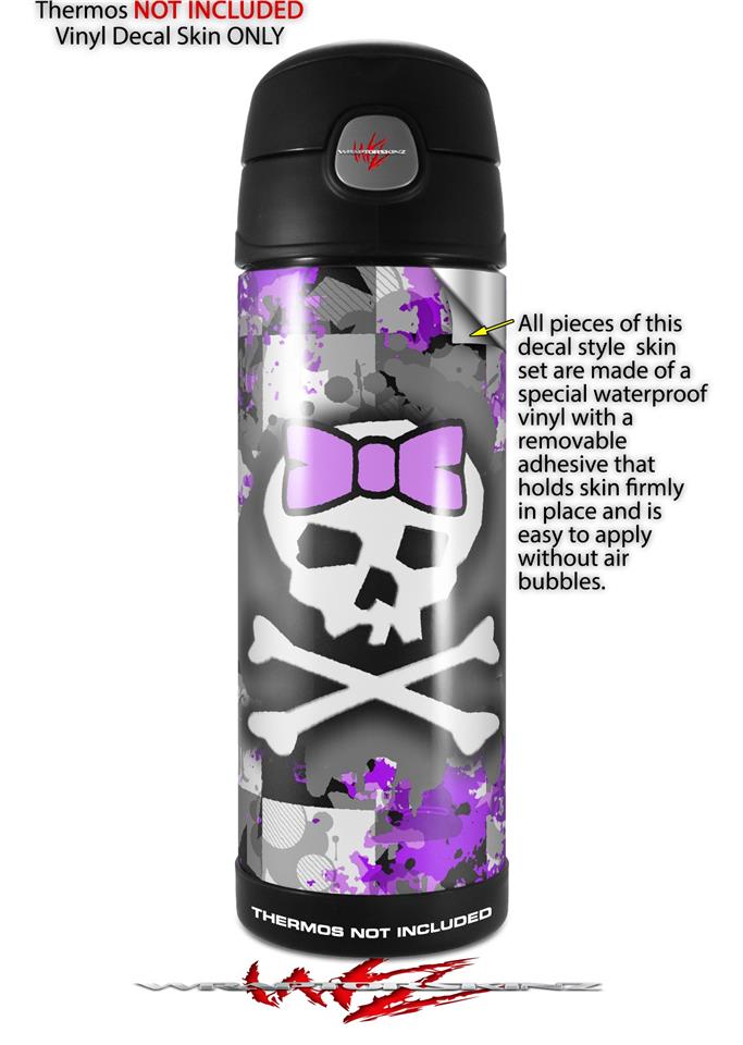 Skin Decal Wrap for Thermos Funtainer 16oz Bottle Purple Princess Skull (BOTTLE NOT INCLUDED) by WraptorSkinz