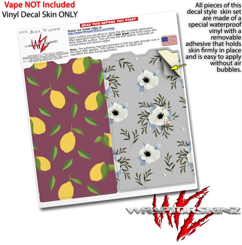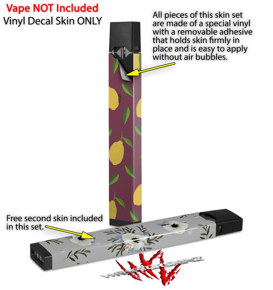 Skin Decal Wrap 2 Pack for Juul Vapes Lemon Leaves Burgandy JUUL NOT INCLUDED