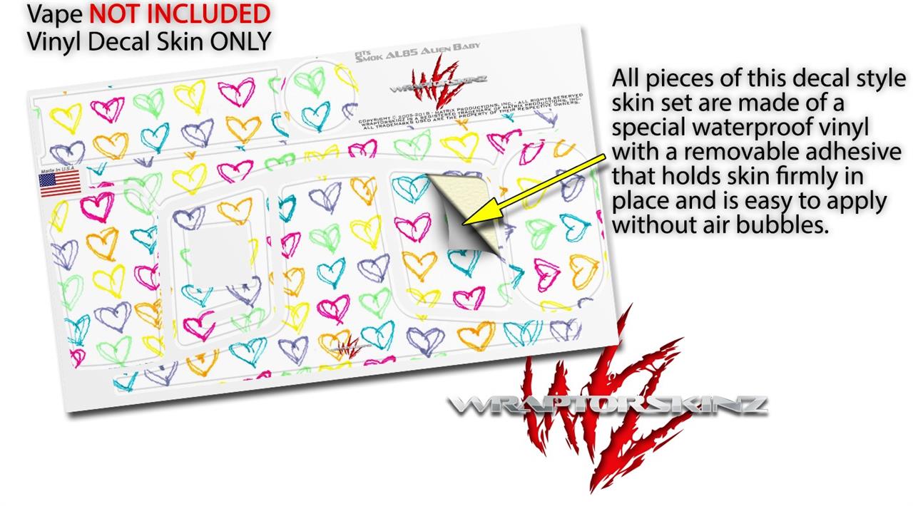 Skin Decal Wrap for Smok AL85 Alien Baby Kearas Hearts White VAPE NOT INCLUDED