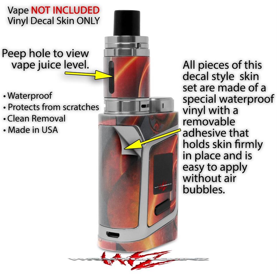 WraptorSkinz® skin wraps are printed using superb photo quality designs and vibrant colors printed with special fade resistant inks that last even in direct sun for years. WraptorSkinz are a composite of two layers of commercial grade materials. The bottom layer is a soft, flexible vinyl with a special removable adhesive that is easily positioned, applied without air bubbles. Next we print the bottom layer with UV protected, fade resistant inks that deliver superb photo quality designs in vibrant colors. Finally we bond a professional grade laminate over the entire skin adding a glossy protective finish. This product is not affiliated with or endorsed by the Smok brand.