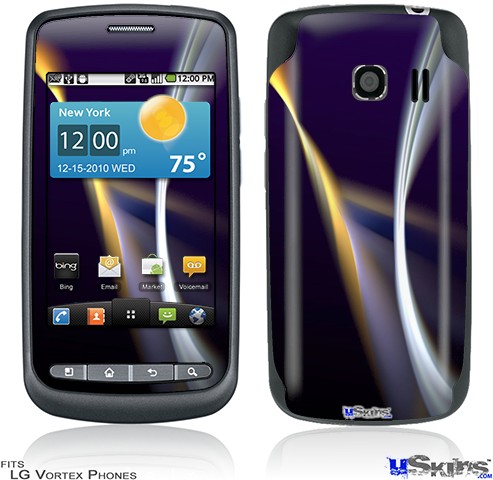 Skin covers front and back of LG Vortex cell phone.