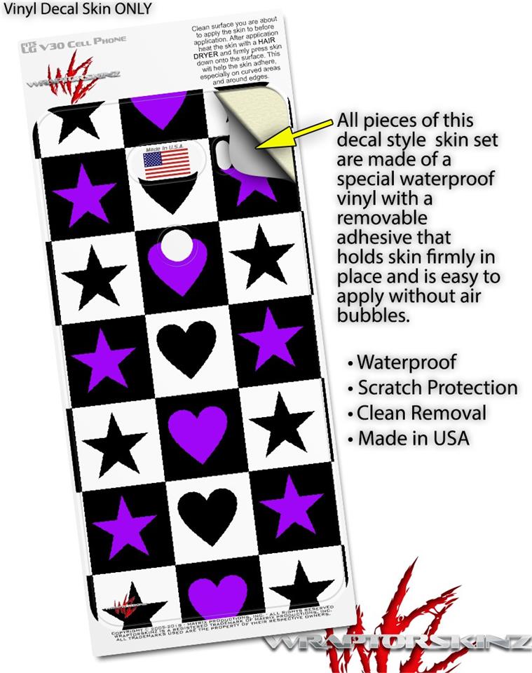 Skin Decal Wrap for LG V30 Purple Hearts And Stars