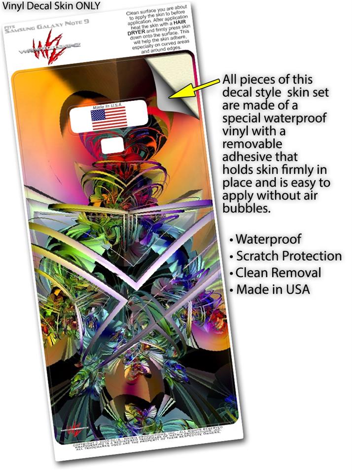 WraptorSkinz® skin wraps for the Samsung Galaxy Note 9 are printed using superb photo quality designs and vibrant colors printed with special fade resistant inks that last even in direct sun for years. WraptorSkinz are a composite of two layers of commercial grade materials. The bottom layer is a soft, flexible vinyl with a special removable adhesive that is easily positioned, applied without air bubbles. Next, we print the bottom layer with UV protected, fade resistant inks that deliver superb photo quality designs in vibrant colors. Finally, we bond a professional grade laminate over the entire Galaxy Note 9 skin adding a glossy protective finish. This product is not affiliated with or endorsed by Samsung.