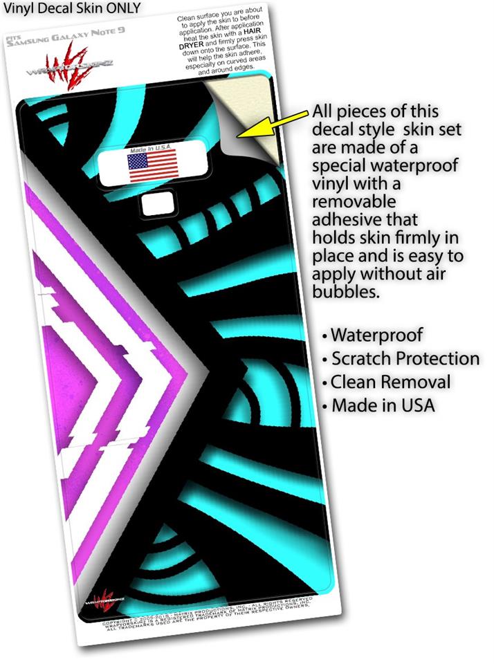 Decal style Skin Wrap compatible with Samsung Galaxy Note 9 Black Waves Neon Teal Hot Pink
