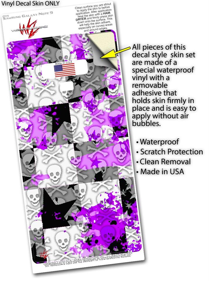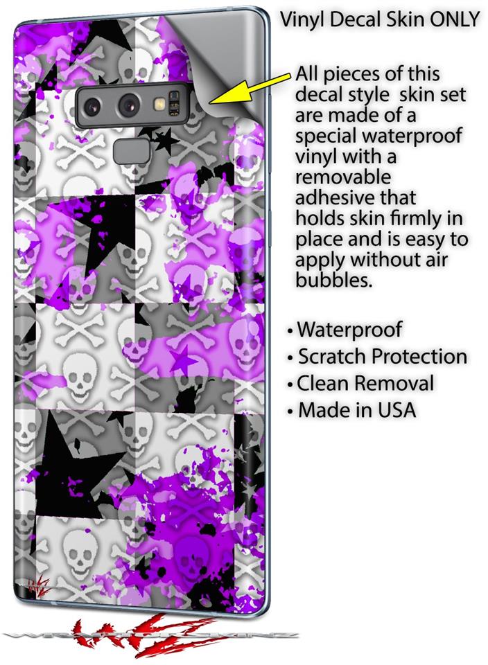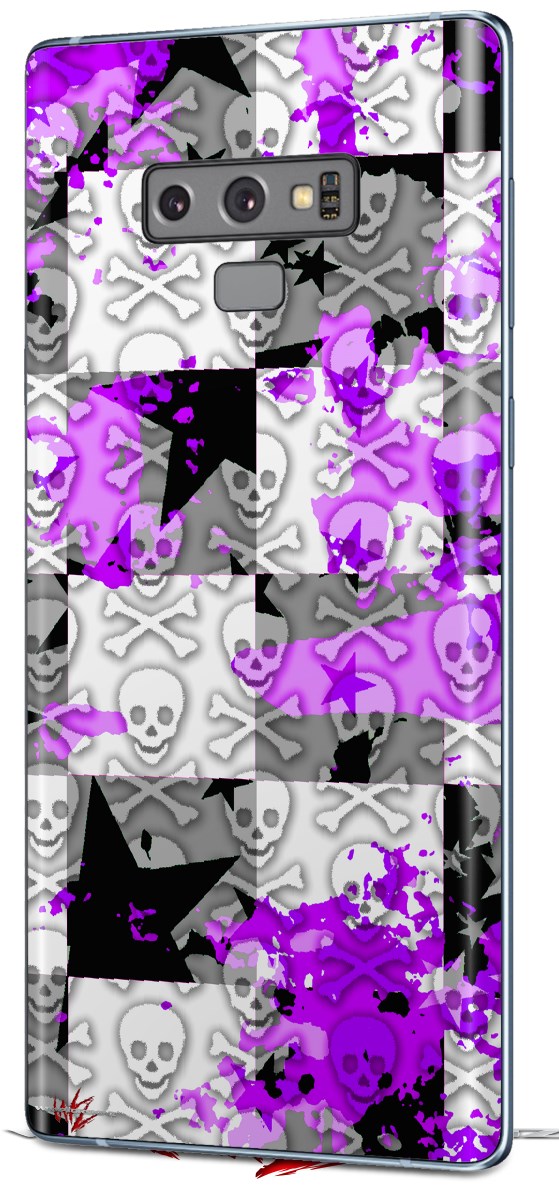 Decal style Skin Wrap compatible with Samsung Galaxy Note 9 Purple Checker Skull Splatter