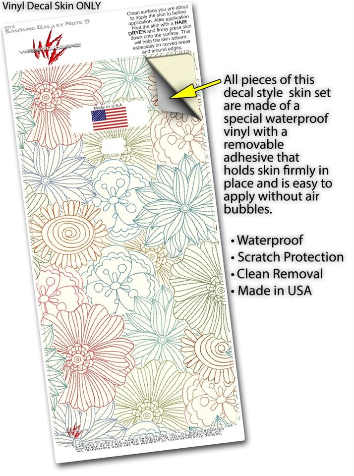 Decal style Skin Wrap compatible with Samsung Galaxy Note 9 Flowers Pattern 02