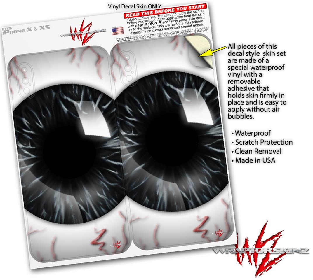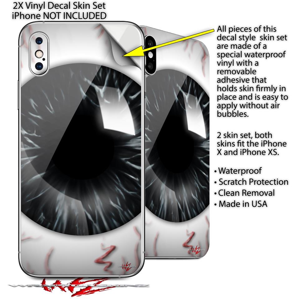 2 Decal style Skin Wraps set for Apple iPhone X and XS Eyeball Black