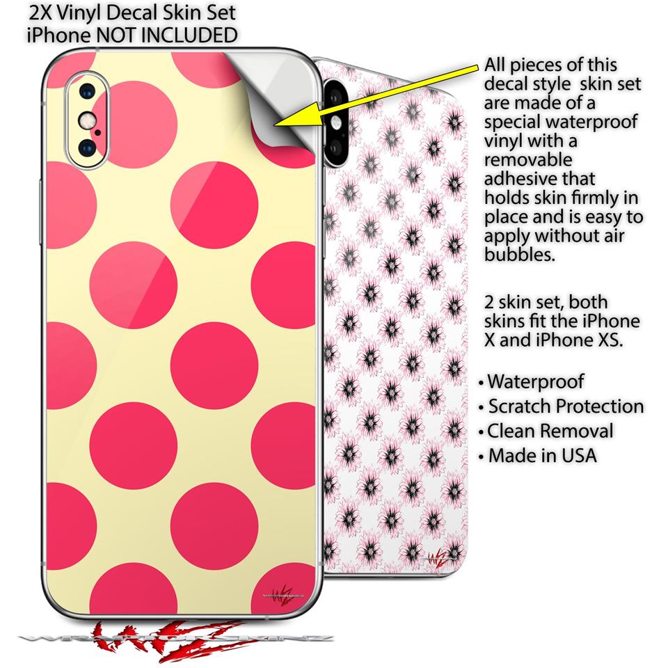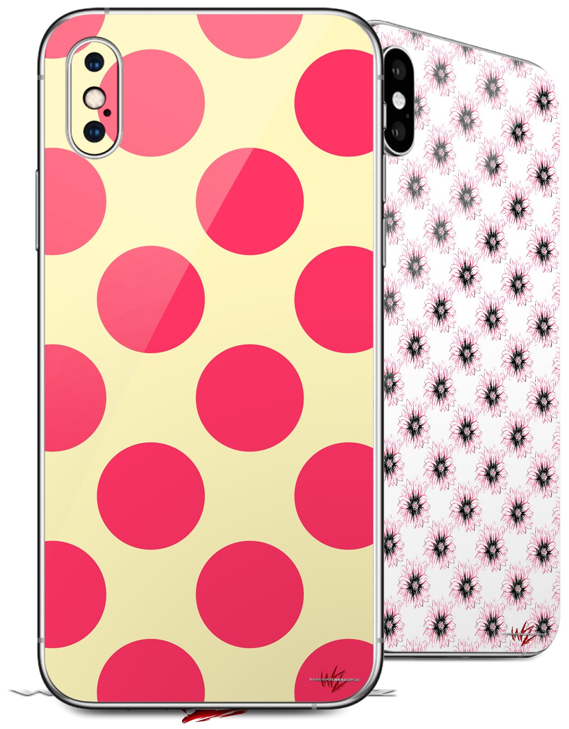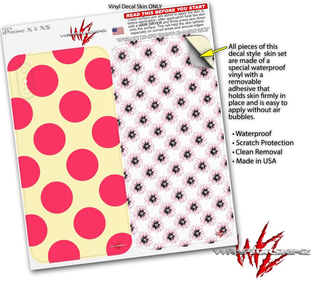 2 Decal style Skin Wraps set for Apple iPhone X and XS Kearas Polka Dots Pink On Cream