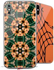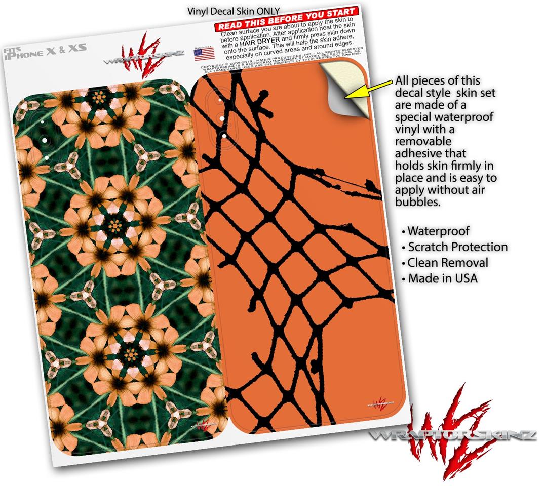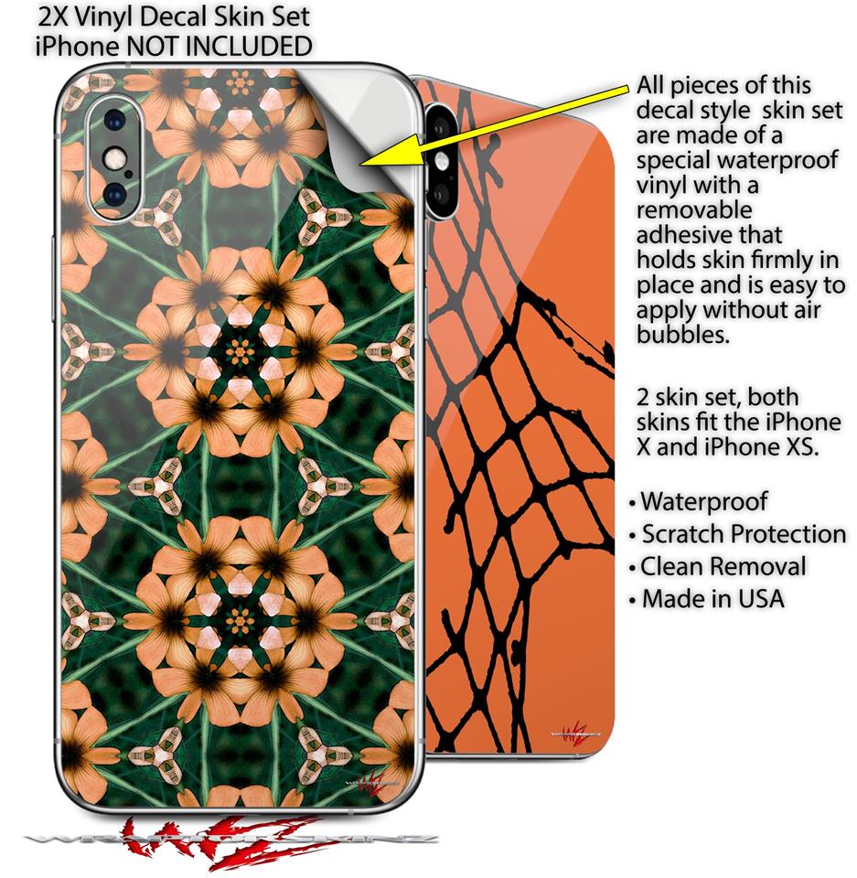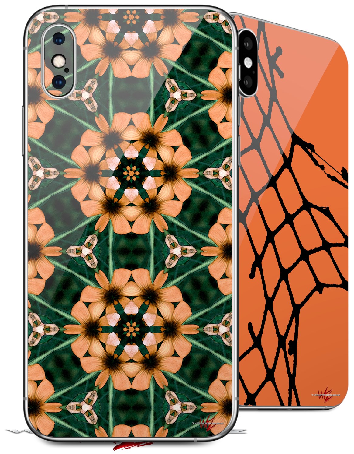 2 Decal style Skin Wraps set for Apple iPhone X and XS Floral Pattern Orange
